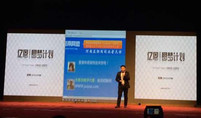 亿恩科技总经理陶威作为河南首席互联网分享嘉宾,与业内嘉宾和创业者分享微创业,从2014年开始亿恩科技提供2000万作为亿恩圆梦基金,引爆全场,广大互联网创业者纷纷咨询亿恩圆梦计划。