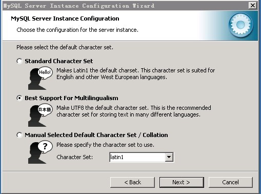 (mysql数据库默认端口,3306) 按照图示都勾上,然后next(此处是提示设置端口、添加端口到防火墙、启用严格模式) ![]() 此处可以选择默认安装,也可以选择第二个选项,或者选择第三个选项之后选择GB2312,这是设置数据库的字符集和编码,国内通常是用GB2312 或utf8
