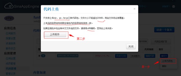 大多数站长在搭建网站的时候都想选择免费的主机空间练练手,这里推荐新浪的SAE实际上就是个多节点的虚拟主机,跟云主机差不多,只不过SAE的节点比一般的云主机要多,把网站程序布署在SAE上比自己用国外免费的虚拟主机稳定性、性能、和安全方面要高很多。 部署自己的网站(以wordpress为例) 1、新浪SAE平台地址:http://sae.sina.com.cn 首先注册用户,这就不用说了。可以使用新浪微博帐号登录。2、登录后,点击“我的首页”,然后点击“创建新应用”。 ![]() 3、根据自己需要填写应用信息,然后点击“创建应用”。 ![]() 4、创建好应用后,点击应用名称就可以进到对应应用的管理界面。 ![]() 5、进入应用管理界面,点击左侧的“代码管理”,进入代码版本控制界面,点击“创建一个版本”,输入版本号,默认是1,点击“创建”。需要输入安全密码,就是你帐号的密码。 ![]() 6、创建完版本后,就能看到以下界面,点击“操作”,看到“上次代码包”窗口,需要注意提示信息,必须严格按照提示信息来进行。 ![]() 7、初始化mysql