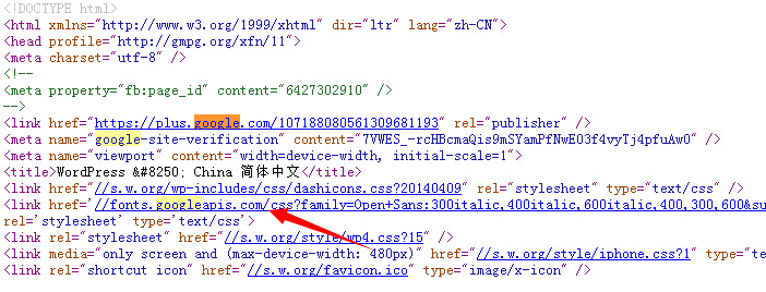 由于谷歌被墙,很多程序都发现网站打开速度相当的慢(wordpress程序最多也有其他调用谷歌js或css的站点,如果你是wordpress程序 就别找主机空间服务器的问题了。好冤枉 T.T),果断一查,发现在加载的文件中还有一条代码是调用的谷歌的CSS文件。如何判断自己网站是否有谷歌的代码。先点开你的网站首页,点击右键 查看网页源代码 这时会出现很多代码,在所有的文件中ctrl+F搜索关键字“google”如果找到了谷歌的链接,就明白怎么回事了。(点击查看大图) ![]() 今天我来说说怎么解决这个问题。其实很简单的: 就是把把调用的谷歌的文件链接换成国内的链接。在你的代码编辑中(可以自己在主题编辑中查找),在所有的文件中ctrl+F搜索关键字“google”,如果搜到相关谷歌的链接诸如fonts.googleapis.com大家可以把这个文件(下载到本地需要翻墙下载)下载下来放到自己网站里完了更换成自己网站域名的文件链接就可以。 例如谷歌的js文件链接是: ajax.googleapis.com/ajax/libs/jquery/1.7.2/jquery.min.js你把这个js下载后放到你的根目录或者其他js目录中 对此,360网站卫士的解决方案是把fonts.googleapis.com替换为 fonts.useso.com;将类似ajax.googleapis.com/ajax/libs/jquery/1.7.2/jquery.min.js替换为ajax.useso.com/ajax/libs/jquery/1.7.2/jquery.min.js。 wordpress程序可能存在谷歌CSS链接的文件有:wp-includes/script-loader.php、functions.php、index.php、header.php,除此之外可能一些插件也有谷歌链接,这就需要你关闭插件看看是否网站打开快了来确定哪个插件含有谷歌链接了。 其实还有最简单的方法来判断,打开慢是空间还是程序的问题:更换个网站程序 例如 织梦的程序,安装后 直接访问后台和前台 就不会有这些加载慢的问题,或者直接上传服务器探针进行测试。