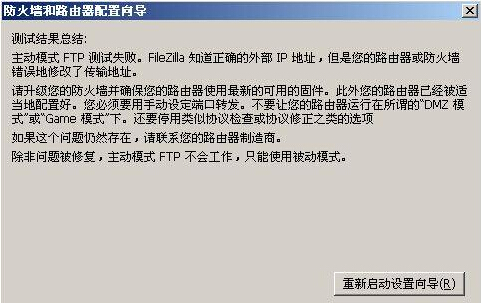 next之后点击测试一定会收到错误提示信息,因为我们还没有配置路由器。下面我们就设置一下路由器。