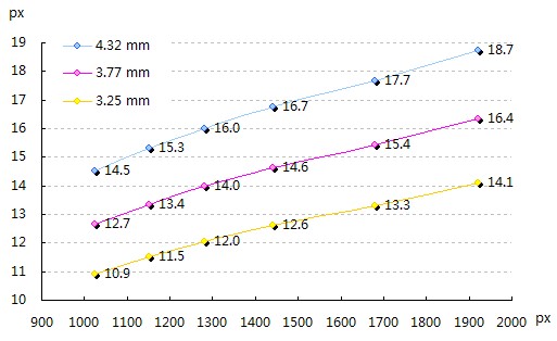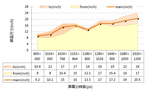 计算不同显示器上的字号大小 用屏幕的物理宽度除以像素宽度,就可以得到每个像素的宽度。然后用指定的文字物理大小除以这个数,就可以得到在不同分辨率下所需的字号。例如要显示4.32mm见方的文字,各分辨率下分别需要如下的字号(对笔记本和台式机分别统计):![]() 不同分辨率下需要的字号 可以看出笔记本和台式机的尺寸相差很大,为方便使用,使用各分辨率的主流尺寸或平均尺寸计算出指定字号在每个分辨率下所需的字号。(下图去掉了基本只用在笔记本上的那些分辨率),以4.32mm、3.77mm、3.25mm为例(17寸1280*1024分辨率下的16、14和12号字):