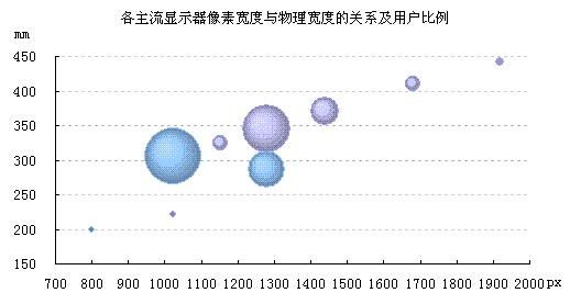 网页设计师往往需要考虑不同客户端的浏览体验。文字大小,是用户体验中的一个重要部分。不同的分辨率,不同的显示器尺寸,不同的DPI,乃至不同的浏览器设置,都会对最终展现的文字大小带来影响。虽然现在很多浏览器已经可以方便地缩放页面,但用户每次光临都要重新缩放,总归麻烦,何况还有许多用户不知道如何缩放页面。最好还是根据用户的分辨率给用户一个比较体贴的默认字号,那这个字号多大合适呢? 12px?14px?15px?16px? 还是压根就不应该使用px这个单位呢? 问题的根源,在于屏幕上的一切字号单位(px,pt,em)都是相对单位,单凭它们并不能确定文字的实际大小。何况人对文字大小的根本感知在于眼睛的视角,这不仅取决于文字的物理尺寸,还取决于它到人眼的距离。 首先假定一个我们希望达到的文字物理尺寸,例如设定为17寸1280 * 1024显示器上的16px,计算可得它的高度约是4.32mm,我们计划让网页文字在大部分显示器上都比较接近这个大小,那么在不同分辨率下应该显示成多大的字号呢? 统计用户主要的分辨率和对应的屏幕大小 要在物理尺寸和分辨率之间换算,首先要统计分辨率和对应的屏幕尺寸。用户分辨率的分布情况可以从网站的统计日志里获得。由于每个分辨率设置可能对应好几个不同尺寸的屏幕,而屏幕尺寸又无法通过网页获得,只好对现在的显示器市场进行统计分析:针对某一分辨率,统计可能的屏幕尺寸范围,从最小到最大,相对主流的是多大(或使用该范围的中间值作为主流尺寸)。如下图所示: ![]() 电脑显示器市场(产品种类繁多,难免挂一漏万,数据仅供参考) 计算每个分辨率主流屏幕尺寸的物理宽度 现在的显示器长宽比不仅有4:3的标准屏,16:10的宽屏,还有更多不规则比例,为了在不同长宽比的显示器之间进行比较,统一使用横向分辨率来统计。用主流尺寸和长宽比(假设像素的长和宽相同)计算出屏幕宽度(英寸),再换算成公制(毫米),将其一一对应就可看出屏幕大小的趋势。再结合各分辨率的用户分布,结果如下图所示(图片中每个点对应一个分辨率,横轴为屏幕横向的像素数,纵轴为该屏幕的物理宽度,气泡大小表示使用该分辨率的用户人数。其中蓝色气泡表示标准屏,紫色表示宽屏):最大的三个气泡分别是1024*768,1280*1024,1280*800。 ![]()