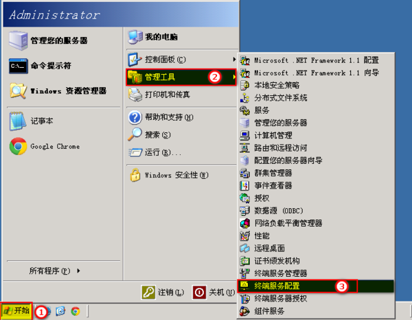 需要在云主机上进行的配置: 5、正常登录云主机,允许“音频映射”。步骤:开始 – 管理工具 – 终端服务配置。
