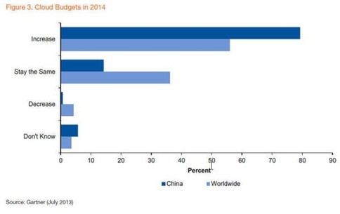 通常业内人士的都认为中国企业更加偏爱私有云,但Gartner的报告显示中国企业对公共云和私有云的选型意向比较均衡。