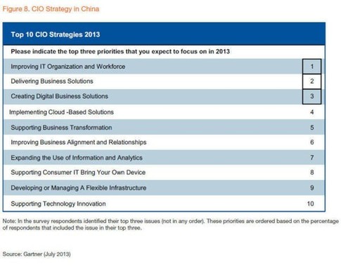 未来三年中国企业CIO心目中最重要的三大技术按优先级排序依次是:商业智能应用/数据挖掘;云计算(SaaS、IaaS、PaaS)和移动技术。