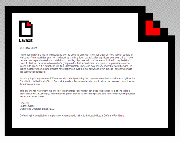Lavabit业主Levison表示它将在法庭上战斗到底,并且放出了其PayPal账户请求大家的法律支援。
