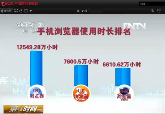 移动互联网的竞争已经全面展开,央视CCTV-2《第一时间》今日报道,三年磨一剑的QQ浏览器已处行业领先地位,手机浏览器用户和流量目前正加速向互联网巨头转移。