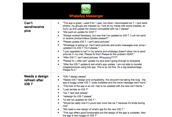 Applause针对WhatsApp的评论做了案例调研,发现问题真的不少。用户在发送和接收图片、使用新键盘,以及静音对话时会出现问题。此外,用户对于WhatsApp的全新外观和感受也非常不满,认为新版WhatsApp非常“无聊”,“看上去很垃圾”。下图是一些评论的截图。