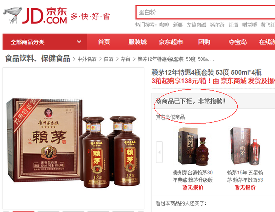 据了解,京东已经下架了赖茅的相关产品,但天猫商城上依然还有很多产品可以购买。