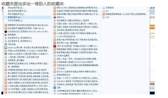 收藏夹中出现大量其他用户保存的内容: