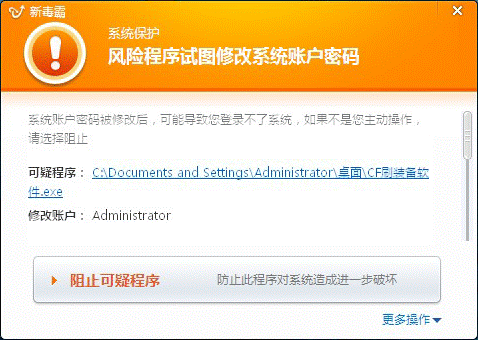 图6.金山毒霸拦截病毒修改系统账户和密码