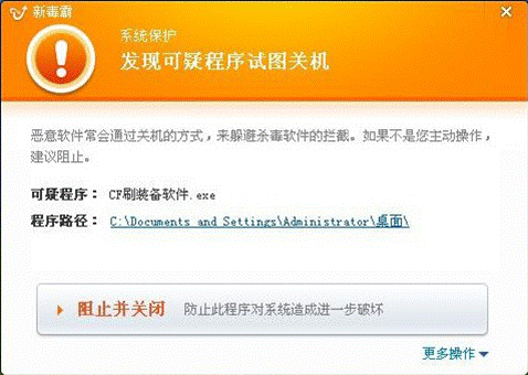图7.金山毒霸拦截病毒强制关机
