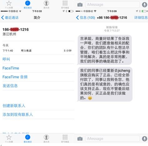 2、截至2014年11月11日14:00为止,分别有自称是代表天猫公关公司的人和天猫小二的人打电话来要求我不要把天猫员工穿盗版卫衣的真相向媒体披露,但为何截至目前,我们还没有收到官方的正式致歉?
