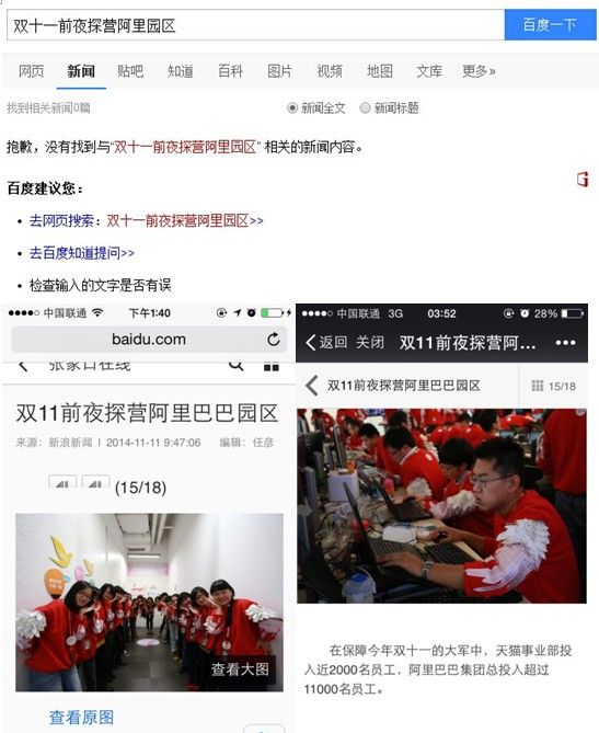 3、网上已经搜不到新浪原发的“双十一前夜探营阿里园区”的专题图片新闻,只能搜到其他媒体转载的,请问贵公司真的是很有诚意在和我们沟通吗?