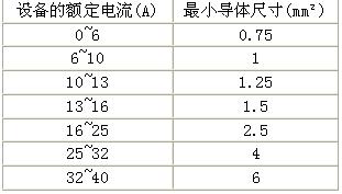 除了电缆的截面积,保护导体的截面积也必须符合要求,表3列了单芯电源软线导体截面积与载流量对应的关系,要尽量和电源线的线径保持一致。整个导体的电阻要小于0.1欧姆。在接地导体上,不能有任何的保护装置,如开关、保险丝、断路器等。