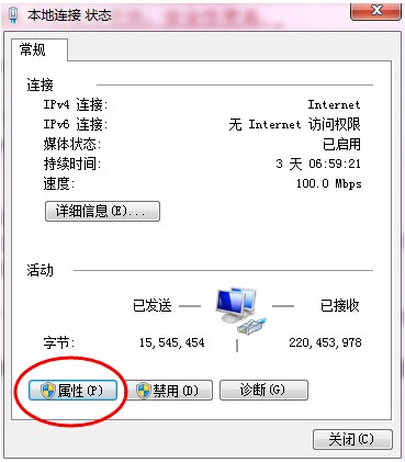 4.点击“属性“按钮,Windows 7 可能会提示请求网络设置更改的权限。