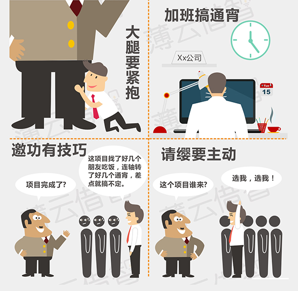 最后我们总结了高额年终奖的二十字箴言:大腿要紧抱,加班搞通宵。请缨要主动,邀功有技巧。