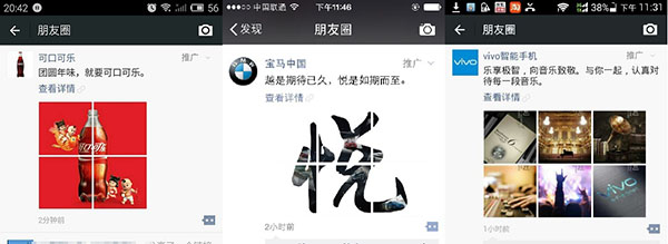 “刷了半天发现是个 Vivo 的广告,感觉一下子不好了!”近日微信朋友圈信息流广告首批上线,宝马中国、Vivo 智能手机和可口可乐的广告出现在每个人的朋友圈信息流里,但是每个人只有一个。所以瞬间全体微信用户被贴上了三个标签:刷出宝马广告的,刷出 vivo 广告的和刷出可口可乐广告的。