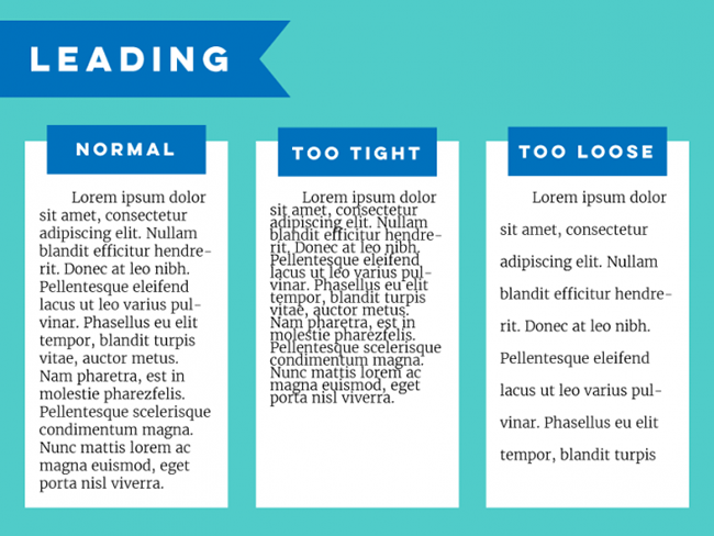 行间距也是影响可读性的重要因素,过于紧凑会难于识别,但是一味地拉开间距在视觉上的效果并不合理。一般行间距是行高的50%左右。