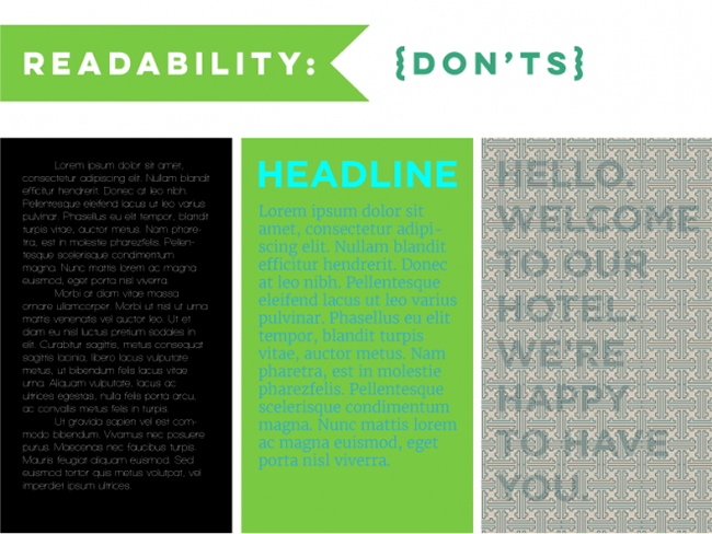 正如同上文所说,影响可读性的影响因素很多,不过在诸多问题当中,确保可读性的基础是可读——至少要让人看清元素本身。在黑色的背景上采用白色的字体一般能保证可读性,对比很明显,但是如果字体太过于纤细,视觉上的辨识度就很低了。字体过小、色彩对比度不够、透明度过高都会造成类似的问题,只要你发现难于识别,有针对性地处理即可。
