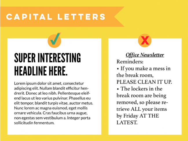 同样,这是一个在英文情况下常见的设计误区。在标题中全用大写,这个没问题,段落中如果偶有需要强调的地方用大写也说的过去。但是在此之前,要保持约定俗成的最基本的使用习惯:标题大写,正文小写。