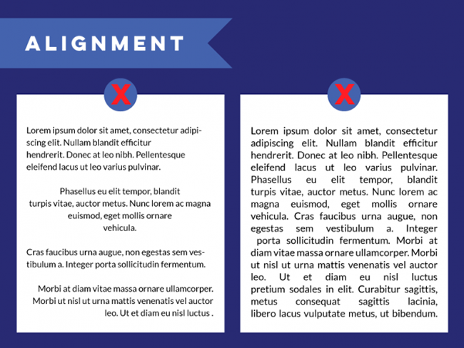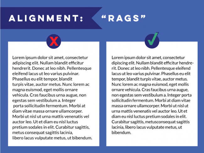 设计原则中,对齐是最重要的几项之一。对齐会让文字排列有序而合理,视觉上统一而一致。不同的对齐方式混合在一起会产生随机的间距,难看且阅读困难。