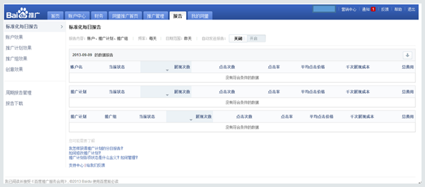 1. 网盟推广首页:显示账户概况、账户分日报告等信息,帮助快速了解账户和推广的基本概况。
