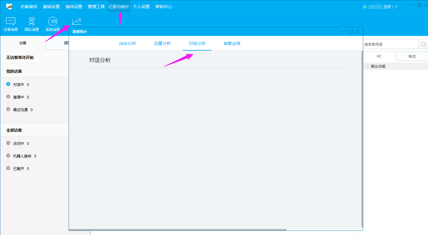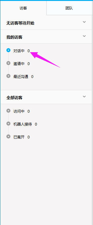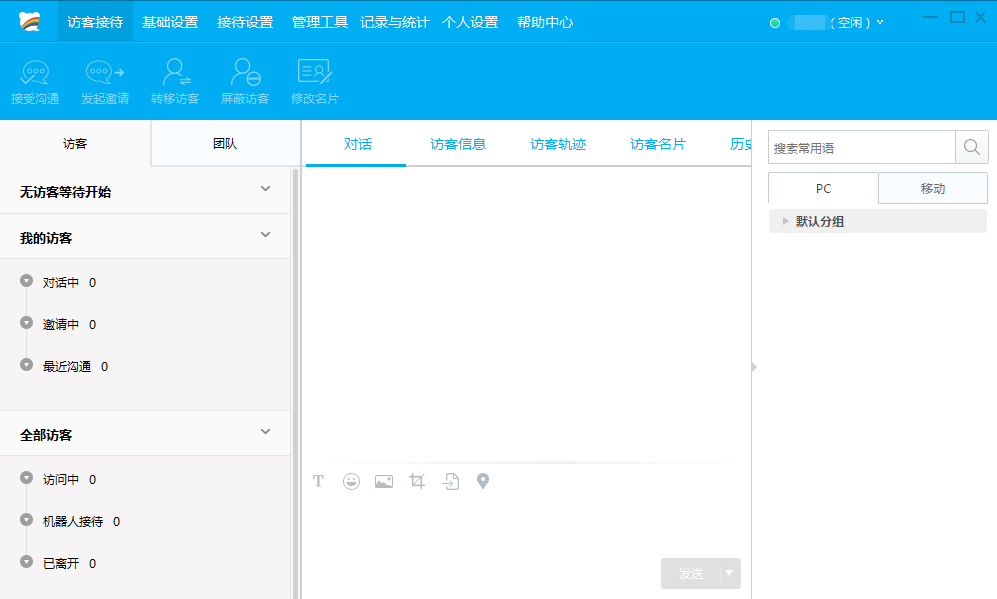 左边是“对话列表”,显示正在访问的访客以及一些访问记录。