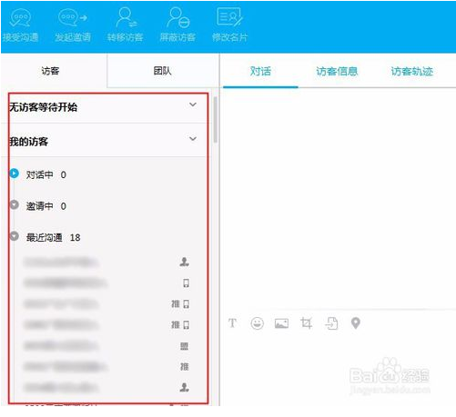 1.有对话中,邀请中,最近沟通中,等访客信息。