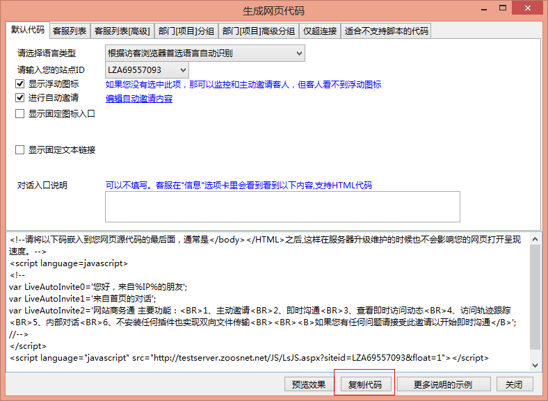 根据提示,正确绑定域名(域名:您将要在使用商务通的页面的网址)