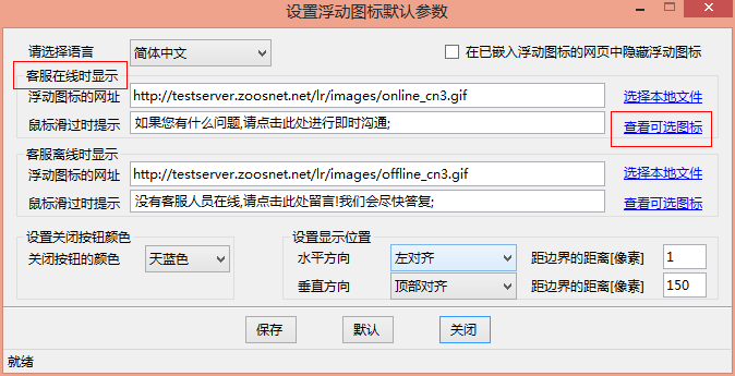 3.注意浮动图标分两种情况显示,分在线和离线两种