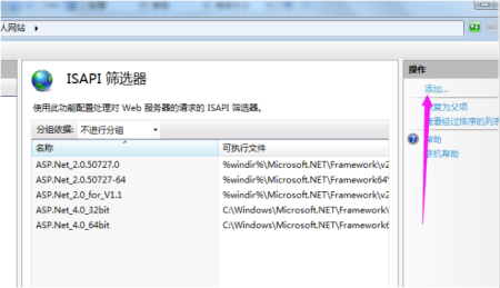 5、检查ISAPI筛选器,若应用池是4.0,就要有4.0的筛选器,(请注意是32位与或是64位)