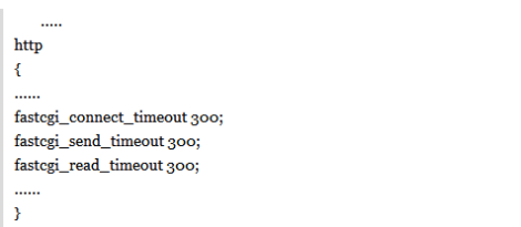 (2)、部分PHP程序的执行时间超过了Nginx的等待时间,可以适当增加nginx.conf配置文件中FastCGI的timeout时间。