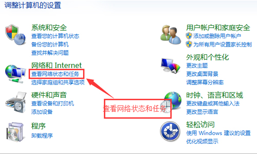 2、进入控制面板设置页面,找到网络状态和任务,点击进入设置页面。