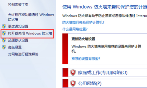 4、在导航栏左侧找到,打开或关闭Windows 防火墙。