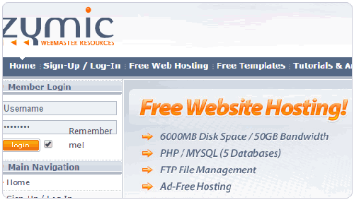 Zymic免费空间,空间6G,每月50G流量限制,FTP、Web方式上传管理文件,支持PHP5,限制较多,有3个MySQL数据库,提供免费二级域名1个,可绑定无限个自己的域名,无广告。