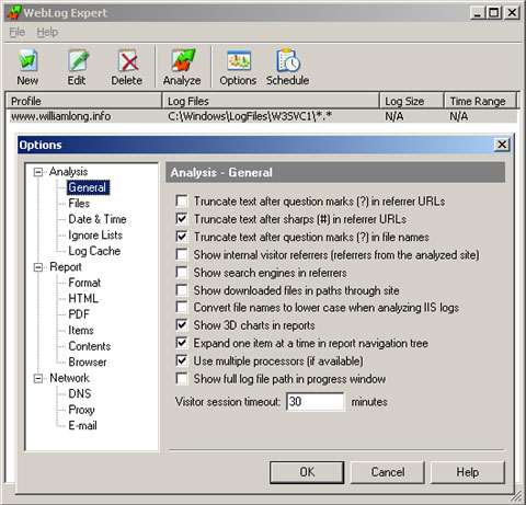 虽然Google Analytics是一款强大的免费的网站分析服务,但必须加入统计代码才能使用,WebLog Expert则可以直接分析网站的访问日志文件,通过日志文件分析出网站的站点访问者、活动统计、文件访问量、搜索引擎、浏览器、操作系统和错误页面等等众多的统计信息,是网络监测的好助手。这个软件本身不免费,不过其另一个版本WebLog Expert Lite是免费的。
