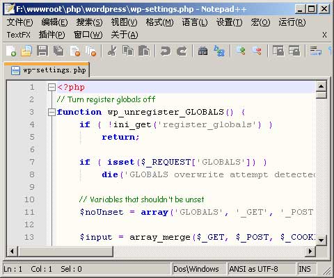 Notepad++是一个免费开源的源程序代码、HTML网页代码编辑工具,支持多达数十种常见源代码或脚本的语法,包括C,C++,Java,C#,XML,HTML,PHP,Javascript,RC resource file,makefile,ASCII,doxygen,ini file,batch file,ASP ,VB/VBS,SQL,Objective-C,CSS,Pascal,Perl,Python,Lua等,功能非常强大。在服务器上安装后可以直接修改网站上的源程序代码。