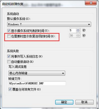 第四步:在设置页面,只需要勾选在需要时显示恢复选项的时间就可以了,最后点击确定。