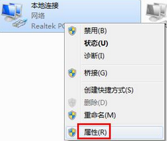 3、接着右键点击“本地连接”,选择“属性”。如下图: