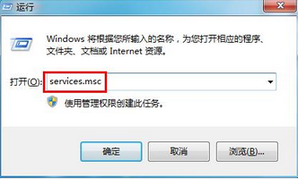 5、使用快捷键win+R,直接打开运行,并输入“services.msc”,点击确定。如下图: