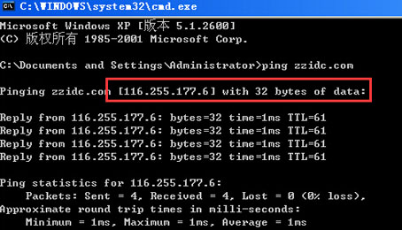 3、怎样测试DNS记录是否建立成功呢?我们在“开始→运行”,输入“cmd”,点击确定,即可打开一个DOS窗口,输入“enkj.com”,如果有如下图的响应,则说明已成功建立好了DNS记录!