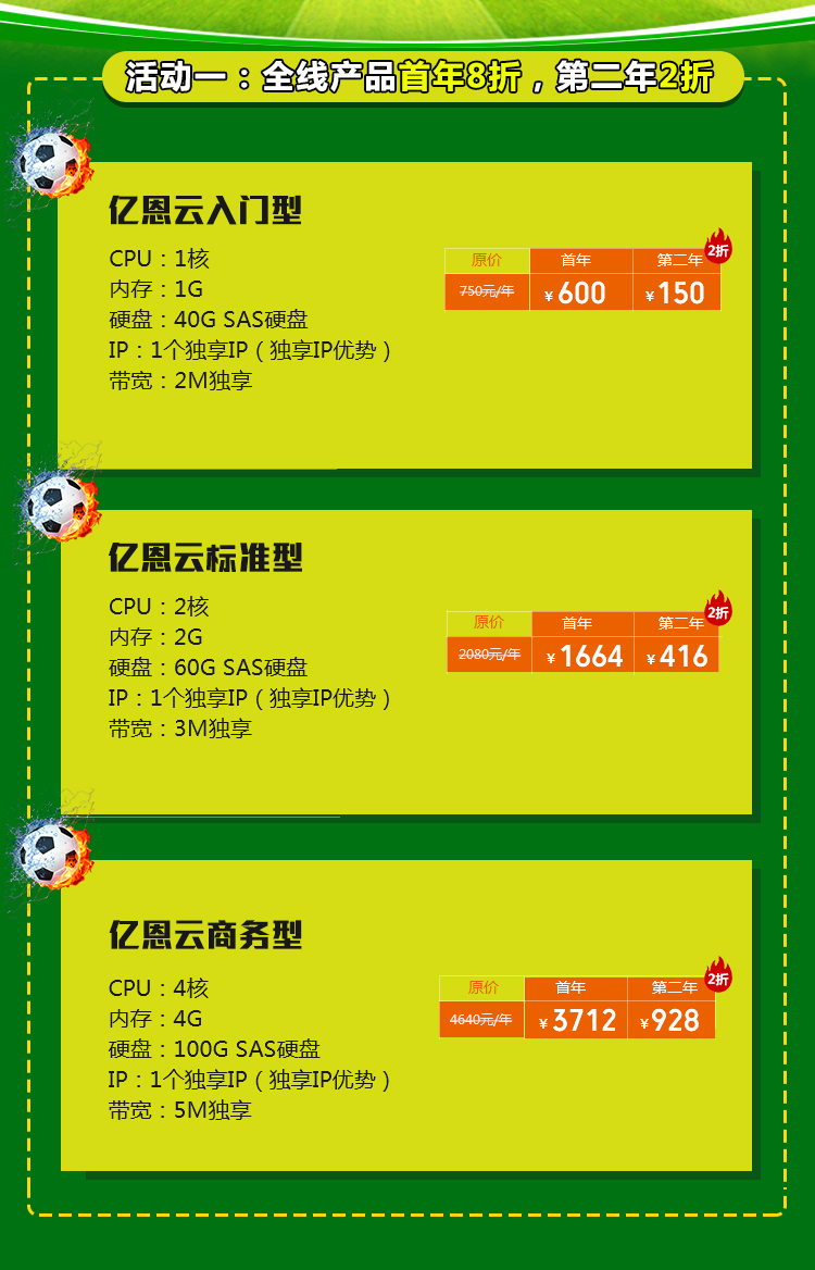 1、活动一针对于亿恩云服务器全线产品,不限机房,具体配置价格参考官网相应机房折扣;