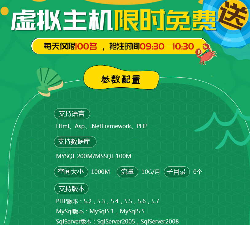据悉,亿恩科技将于本月27日开始,举行为期一个月的夏日送凉活动,凡参加该活动的用户都有得免费的虚拟主机机会,每天上午限时100名抢注活动,抢注时间:09:30-10:30。
