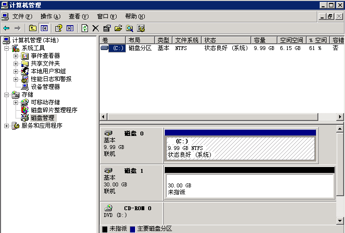 磁盘加载:新开的云主机默认只有一个C盘,其它的磁盘空间需要您自己手动加载,详细步骤以下: