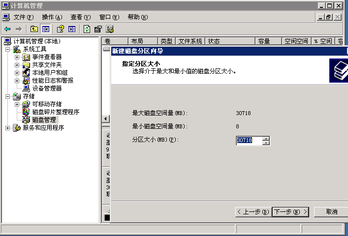 4.执行下一步,到下图这个界面,选择扩展磁盘分区。空间容量自己划定分区的大小,如果不改,默认只分一个区,如图: