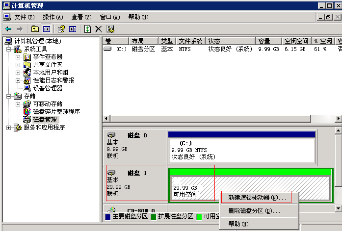 5.再次右键点击磁盘,选择新建逻辑驱动器.出现下图:
