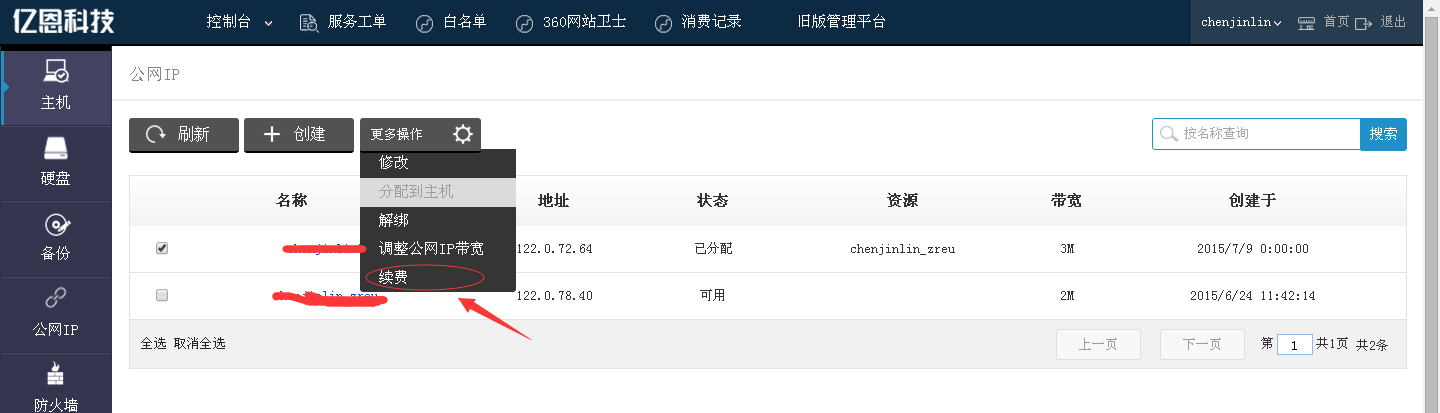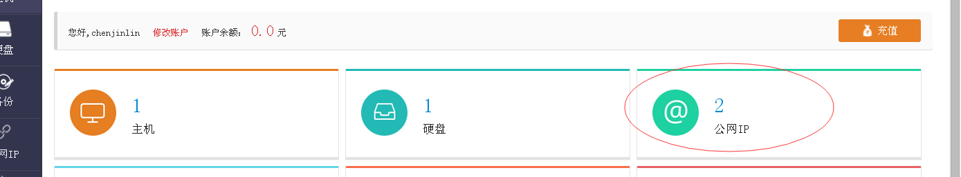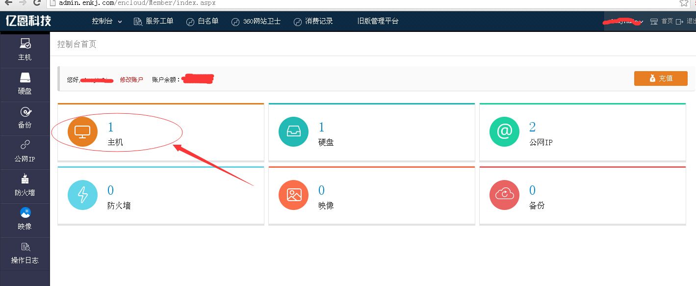 1、首先登陆您会员号,然后找到云主机产品,首先要确定好会员号有续费云主机的费用,如果没有费用需要先点我要充值,然后在点云主机管理,如图所示: