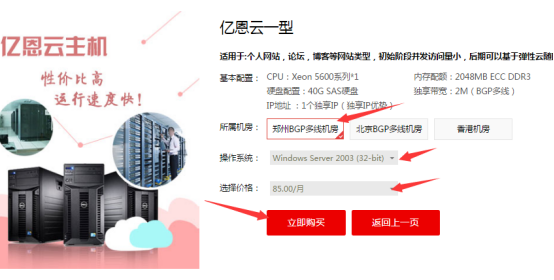 可以选择所属机房,操作系统,购买时长。然后点击购买就可以了。